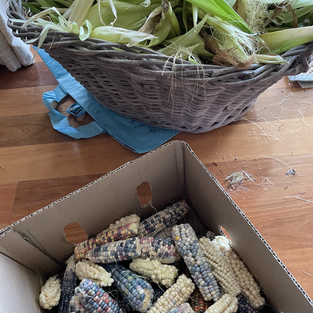 Another thing to do while out in the garden today was to chop up the corn stalks so they could be added more easily to the compost. It was a massive pile. When they are standing tall you don't realise the biomass that accumulates over the summer. Makes a great addition to next years fertility via my compost bin! Finally finished removing the husks from the remaining glass gem corn cobs which I'll leave to dry completely before getting the kernels off and attempting popcorn!